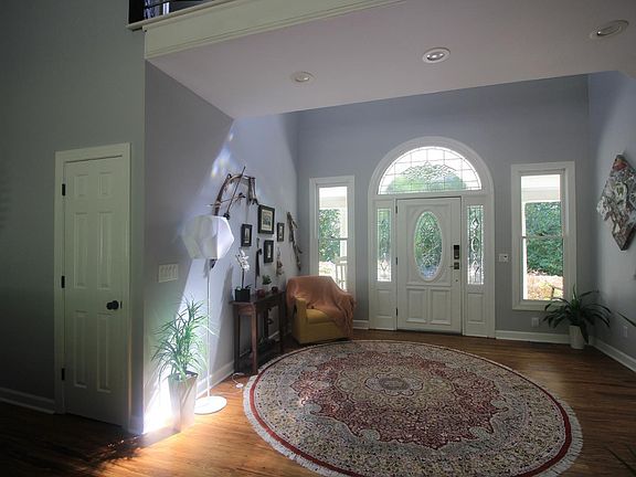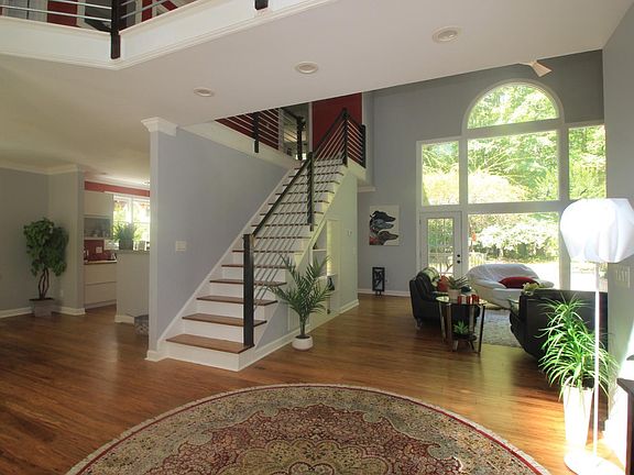 Gorgeous home on border of Apex/Chatham Co. Covered front porch. 2 story entry way, formal dining room, spacious kitchen with custom cabinets, island, breakfast area. 1st floor office/bonus/sunroom. Spacious 2 story family w/ floor to ceiling windows, 1st floor master, w/ his/hers WIC closets. Luxury master bath w/ dual vanity, separate shower/tub. 2nd floor has 2bedrooms with ensuite baths, 4th bedroom or office. Large private wooded lot w/ lot's of outdoor entertaining space. Only 20min to RTP, 540, 10min to Beaver Creek shopping area. Beautiful quite neighborhood