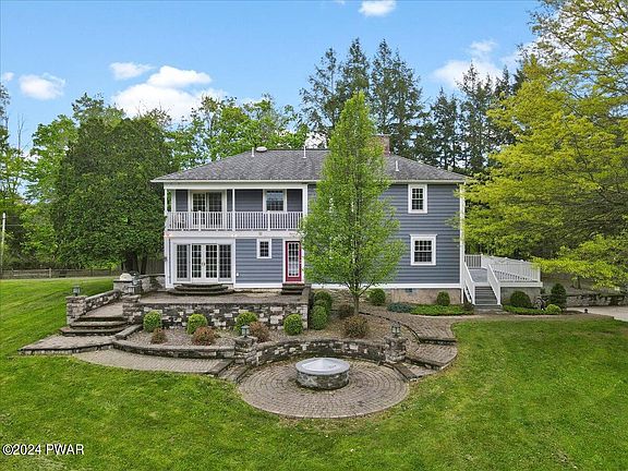 TIMELESS, RESTORED 60+ ACRE ESTATE WITH PRISTINE 5 ACRE POND, 2 STORY GUEST HOUSE & METICULOUSLY MAINTAINED GROUNDS! This enchanting estate offers elegance & convenience, featuring an immaculately restored 4 bed, 3.5 bath farmhouse. This country estate blends rustic charm with contemporary amenities, ensuring comfort & style. The 2nd floor has 2 luxurious primary suites, offering comfort & privacy. The expansive 1st floor is designed for both entertaining & everyday living, with double floor to ceiling stone fireplaces, an open kitchen that flows into a dining area & sitting room. The adjacent living room features doors that open to a spacious side porch, perfect for enjoying the serene views. The updated modern kitchen & dining area leads directly to a large multi-level paver patio which includes a large built-in stainless steel BBQ grilling station with granite countertops as well as a lower-level fire pit overlooking the estate's expansive lawn & pristine 5 acre spring fed pond with fountain & natural stone wall spillway- a sight to see! This pond is ideal for all types of water activities, from fishing (stocked will large Carp, Bass and Catfish) to kayaking; as well as ice hockey & skating in the winter. The main farmhouse is clad in all cedar clapboard siding, with a new roof & windows, making it as sturdy as it is beautiful. An additional carriage house with garage offers a full 2 story large apartment with luxury vinyl flooring, a granite kitchen, & spacious living areas. The main level of this carriage house features tile flooring & an inviting open-air wooden staircase. Guests will feel at home with 2 bedrooms, a full bath, spacious living areas & garage for ample storage. For those with hobbies or storage needs, the estate boasts a 3 story restored barn with 12 foot drive through doors & built in firing range. With its spacious interiors, beautiful outdoor spaces, and high-end finishes, this estate is a sanctuary where every detail has been considered!