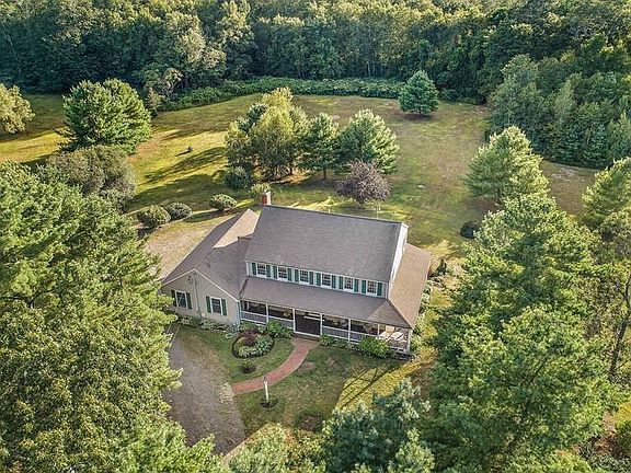 Rare opportunity to have the best of all worlds~land,privacy AND convenience!Situated on secluded,4.65 acres of land owned by same family for generations,property offers luxury of a country estate,YET conveniently situated & minutes to main routes.The meticulously maintained colonial w/wrap around porch,was custom built in '95. Every window & french door leading to the welcoming veranda offers stunning views of the rolling land & soaring trees that seem to go on forever.12+ rooms encompassing 3 levels of living: 4 bedrooms including master ensuite,4 full/1half baths, front to back living/dining rooms (entertainer's dream),office w/custom built-ins,large kitchen &casual dining area,family room w/gas fireplace&built-in entertainment/server,1st floor laundry area,1st floor heated workshop, finished walkout basement w/ 2 large rooms &full bath plus storage area.Barn on property -(1440 sq.ft.,electricity,water,2 wood stoves) perfect for equipment, studio, office, man-cave,etc.Also-New shed.