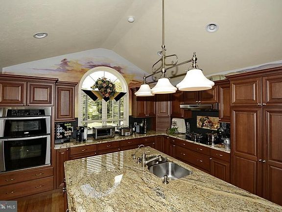 Large Granite Island in Kitchen-Double Sink-Cherry Cabinets adjacent to OPEN space Dining Area-Family Room w/Fireplace next to GREAT room w/Cathedral Ceiling and access to BIG Deck-Formal Living Room French Doors-Master Suite w/Bath & Guest Bedroom w/Bath-Lower Level Rec Room-Cen Vac thru out inc Garages-Covered Pavilion for Picnics & Lighted Basket Ball Court-His & Hers Two Car Attached Garages-Very Private Rural Setting Close to Maryland Line