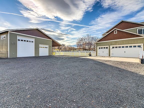 Nestled into the hills of Selah lies your 3,490 square foot two-level home built in 2011 with an extremely spacious and extra deep 36x48 two bay shop nearby as well.Step inside to observe 9 foot high ceilings leading to an office nook area and beautiful formal dining room. Continue into the kitchen to observe shimmering appliances, tile countertops, and bar-style seating. The area is built for open concept entertaining with an extra dining area nearby, along with a cozy living room with a warm pellet stove capable of heating the entire house and skylights above with natural light cascading through. The home continues with 5 bedrooms and 3.5 bathrooms including the main suite in the first level with a walk-in closet and full bathroom with dual sinks...