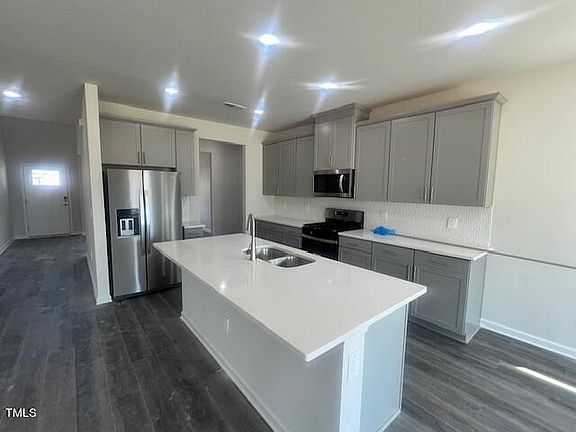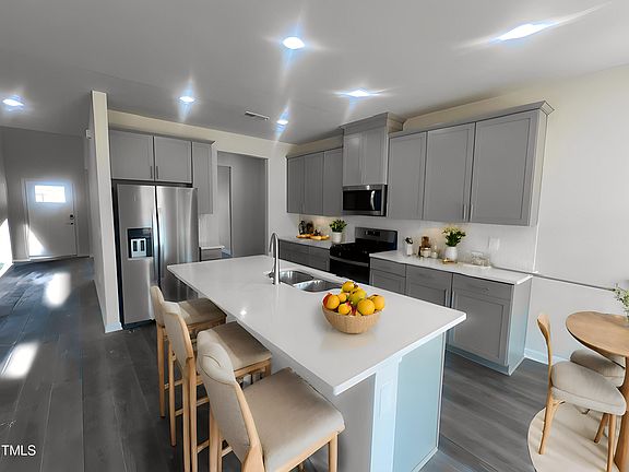 NEW Construction home nearing completion! (Sept 2024) Fabulous, energy-efficient home in desirable River Glen community! The upgraded gourmet kitchen features Pebble Gray Cabinets, neutral quartz countertops, Gas SS Whirlpool range, SS Side by side fridge, large island for entertaining and eating, beautiful tile backsplash, and walk-in pantry. Kitchen opens to a huge great room and eat-in dining area, and the entire first floor includes vinyl plank flooring throughout. The private, 1st floor guest suite with ensuite bath is perfect for in-law suite or guest bedroom. Main level also includes another flex space that could be used as an office/living/formal dining room. Upstairs features spacious primary bedroom with large shower, dual vanities and huge WIC. You'll also find 3 secondary bedrooms and a loft which offers flexibility as an office, media center, or playroom. Washer, Dryer, Blinds, refrigerator ALL INCLUDED! Smart features including door lock, smart garage door, and video doorbell. Fully sodded front and back yard. Ready for Sept closing. This prime location offers quick access to downtown Angier and US-401 connects to Raleigh. Planned amenities include a tot lot and trails. Ask about 4.99% Interest Rate and up to $10k in Closing Costs paid by seller!