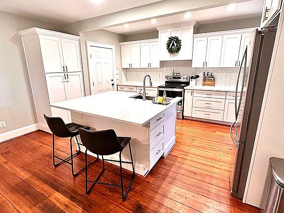 Beautifully renovated 1902 farmhouse for sale in outskirts of Ayden, NC. Renovated in 2021 with completely new plumbing, windows/doors, roofing, electric, and finishes. Master suite on main floor off of kitchen with remaining 3 bedrooms and full bath upstairs. Kitchen has gorgeous white quartz countertops with gold accents and tile backsplash. 1/2 bath off the kitchen. House sits on .84 acres with three 50+ year old gorgeous oak trees in front yard and garden in back yard. Back yard has underground fence for dogs.
