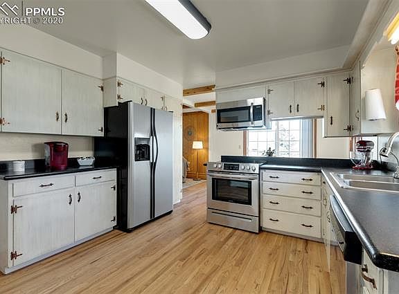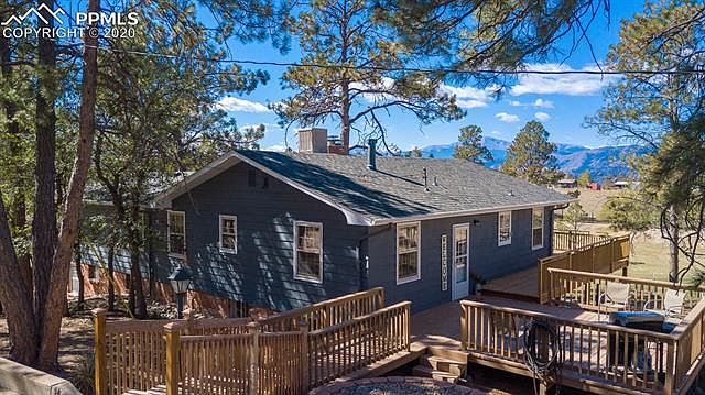 This Wonderful Home Has The Perfect Mix Of Country And City Life~Situated On Over 5 Acres Within Minutes Of Schools, Hospitals, Shopping And Entertainment, You Will Feel Miles Away, But Be Close To All The Amenities You Need~With Stunning Pikes Peak VIEWS Along With Sweeping VIEWS Of The Front Range From Most Rooms Inside And Outside On The NEW Wrap Around Deck, This One Whispers A Colorado Welcome From Every Angle~NEWLY Refinished Hardwood Floors Greet You As You Enter The Kitchen With The Cutest Built In In Storage Area~Beamed Ceiling In Dining And Living Rooms Along With Cozy Wood Paneled Walls In The Living Room Give You The Mountain Feeling As You Gather Around The Wood Burning Fireplace~Spacious Master Suite With BRAND NEW Carpet And NEW Tub And Shower Insert Have Space For A Sitting Area And All Your Large Furniture~Master Bedroom Opens To Deck And Those Amazing Pikes Peak VIEWS~An Additional Bedroom And Full Bath Are Conveniently Located On The Main Level Also~You Will Enjoy The Family Room In The Walk Out Basement That Will Be Perfect For Game Night Or Movie Night~Another Bedroom And Bath Are On This Level Too~Huge Storage Room To Keep All Your Extras~This Huge, Sunny And Bright Office Rivals All With Lots Of Built Ins And A Door To Walk Out To A Parking Area~Gated Entry And Tons Of Parking Areas Allow For Your RV, Boat And Trailer Storage~Over 5 Acres To Run And Play And Breathtaking Mountain VIEWS Will Be Some Of The Many Things That You Will Fall In Love With~Detached 2 Car Garage Plus Storage Shed~NEW Exterior Paint~NEW Roof~Hot Water Baseboard Heat, Water Filtration System, Water Softener And More~Convenient To USAFA~Easy Acess To Powers Corridor And I25~Buyer To Verify Well Permit Uses~If You Have Been Looking For The Perfect Place To Call Home, Come See This One Today!