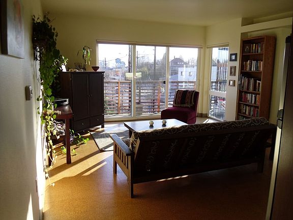 - 870 SF, 1 bedroom/1 bath condo, in a newer, energy efficient, non-smoking building. - Unit has a large wrap-around balcony. - Walkable neighborhood, close to Mississippi St restaurants, stores, bars, and coffee shops. - Close to downtown with easy commuting (Yellow MAX Line Overlook Park stop just steps away and close access to I-5 (within a few blocks of I-5 N or S onramp), and located on a major bicycle route. - Includes utilities except electric and cable. Condo is very energy efficient with central air - including AC. - Newer appliances - including washer and dryer, dishwasher, garbage disposal, built-in-microwave. - Cork floors throughout and new natural wool carpet in bedroom. - Plenty of closet space plus a large, secured storage unit in basement and on balcony. - Secured entry building and SECURED PARKING lot with remote control access (includes 1 assigned parking space). - Large windows offer a lot of light plus newer window treatments! - Condo is Close to: Adidas Campus, Kaiser Permanente, Legacy Emanuel, Overlook Park, Widmer Brewing, Fire on the Mountain, and Mississippi St. One pet may be considered. Condo association has breed restrictions. Condo association requires one-time move in/out fee of $250 (in addition to security deposit). $225 of the security deposit is non-refundable to cover move-out cleaning. Background and credit check is required with application. Contact owner via email to schedule a tour.