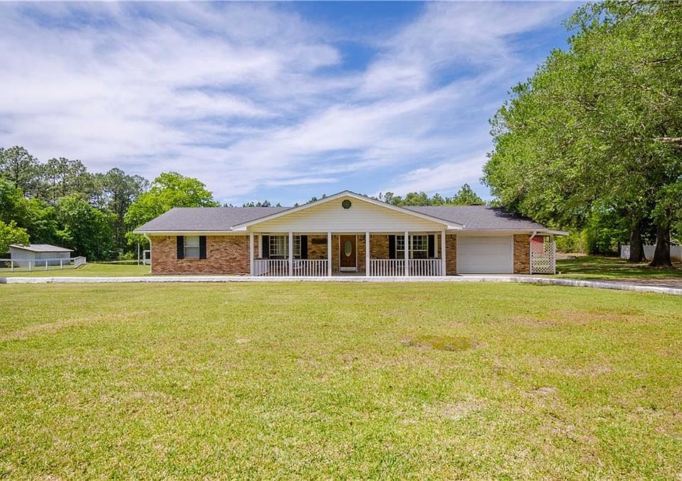 This  charming country home is nestled back on 3 Acres with a white pickett fence  .  The VRM is 269,900 to 289,000.  It's over 2200 sq ft and has 3 bedrooms and 2 baths.  The kitchen has split brick, laminate hardwood in hallway and bedrooms.  It has a formal living room as you walk through the covered front porch entry and a family room off the kitchen with a gas fireplace.  BUT that's not all, it has a sunroom attached that over looks the spring fed pond with a pier.  BUT WAIT, that's not all, it has a GIANT shop out back with electirc and plumbing, also a 3 carport attached to the left side for your boat, tractor, utility trailers, etc.  You don't want to miss out on this home.   Buyer will need to verify measurements.