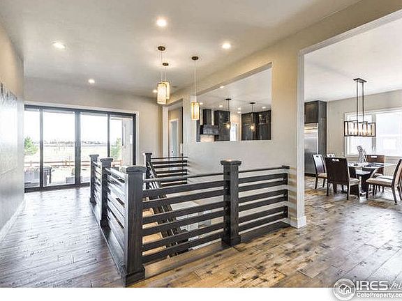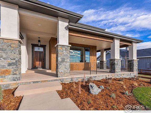 Modern & refreshing ranch in stunning Harmony Club quality built by Stonefield Homes. Beautifully situated next to a greenbelt & backing to the golf course, this gorgeous home with deep wrap around porch offers views of the Mountains. From the moment you enter you'll feel right at home in this open floorplan that flows beautifully from the fabulous outdoor spaces to the inviting indoors. You'll love the dramatic foyer with custom rail in entry hall, high ceilings, gorgeous wood floors, gourmet kitchen with custom cabinetry and range hood, large curved painted island, walk-in pantry, serving buffet perfect for casual entertaining and extra storage & open dining area with mountain views. The great room offers a wall of windows, modern fireplace, built-in entertainment area and patio access. The master retreat is fully appointed & features a spa bath with gorgeous shower, soaking tub, split vanities and a spacious walk-in closet. The main floor also features a study with glass doors, large laundry room, mud room area and private secondary bedroom suite. The finished basement is perfect for entertaining with large windows to let the light shine in, fully appointed wet bar, bonus room that makes a perfect game room or theater room. third bedroom suite and plenty of additional space in the unfinished area for all your future needs. Call Marnie Long today to learn about this exceptional home.