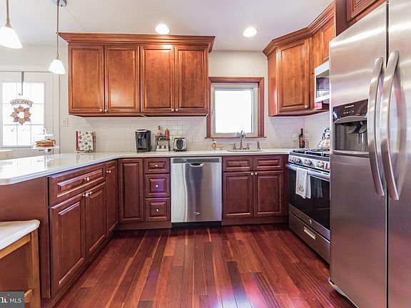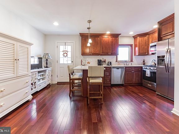 Fall in love with this fabulous three bedroom 2 1/2 bath townhome with deck and bonus room. Arriving you were greeted by a brick retaining wall and new to newer concrete. Living room with large bay window and beautiful Brazilian cherry hardwood flooring which continues through the dining area and the completely remodeled expanded eating kitchen with quartz countertop and breakfast bar with pendant lighting, stainless steel appliance package with new refrigerator (2021) and five burner range, Accent hi hat lighting, crown molding and garbage disposal. Kitchen exits to Trex deck with barbecue grill included. A convenient first floor powder room completes this level which has been completely remodeled (2017). The second level offers main bedroom with private three piece ceramic tile bath, his and her closets with vanity area and new carpeting (2021). Two additional nice bedrooms with Pergo style flooring. A deep linen closet complete this level. The basement has been fabulously finished with luxury vinyl flooring. Family room with gas fireplace and accent high hat lighting exiting to oversized patio and rear yard. Back inside you are sure to appreciate the multipurpose bonus room which exits to one car garage with insulated garage door and electric garage door opener. The basement level also offers a laundry area with washer and dryer included. This home is loaded with extras and upgrades some include, new HVAC installed (2019). New Domestic hot water heater(2021). New roof shingles on eve, soffit and above living room bow window(2022). New gutter and downspout (2022). And new custom interior railings (2022). All wrapped up with a one-year home warranty for extra peace of mind! This home has been loved and cared for through the years and is a must see!! Call your realtor today!! Agents read agent remarks below.