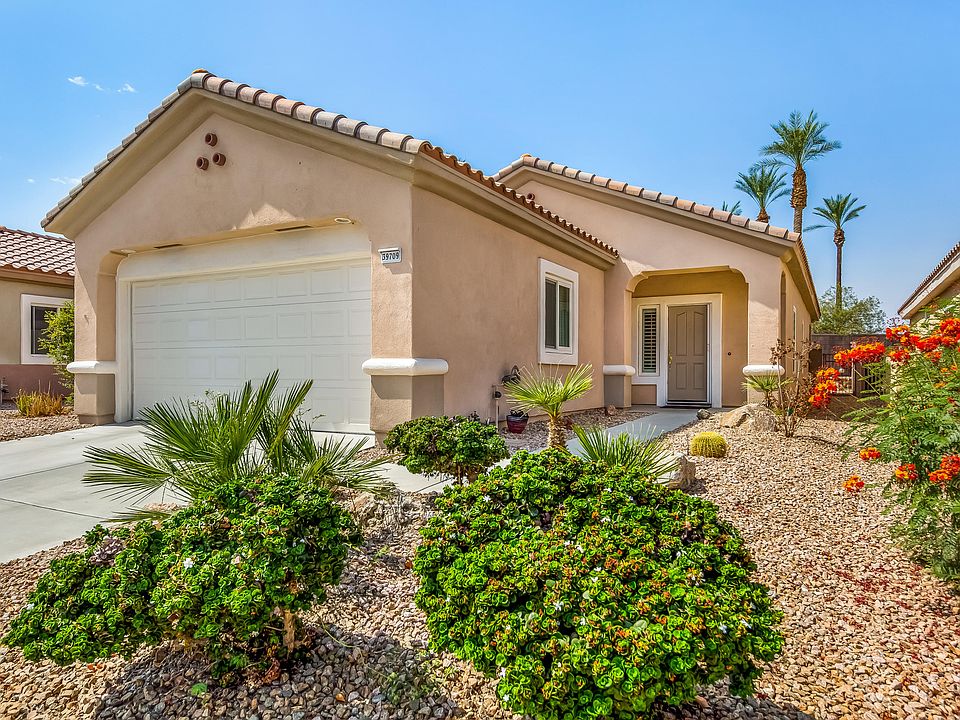 Desirable Pasadena Model available at Del Web Sun City in Palm Desert . Home offers newer appliances, quartz counter tops throughout, energy saving doors and windows. The backyard is complete with a beautiful fire pit, industrial misting system, and patio overlay on slab. Price also incudes golf cart in extended two car garage.
