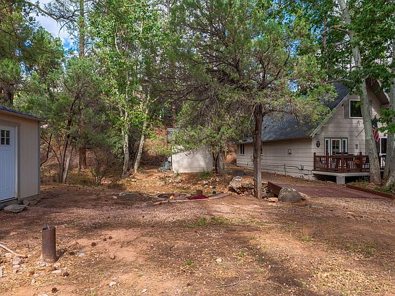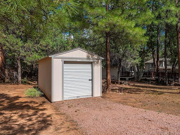 Charming cabin nestled among towering pines in the heart of Pine! A picturesque bridge over a seasonal creek welcomes you home. Enjoy peaceful mornings and crisp mountain air from the spacious front deck. Inside, you'll find wood laminate flooring, a beautifully updated kitchen with granite countertops, updated cabinetry, and stainless steel appliances. The great room boasts vaulted ceilings with exposed wood beams and a cozy gas fireplace. A detached storage room with a roll-up door offers excellent space for tools, toys, or workshop potential. Fenced dog run adds convenience for pet owners. This is mountain living at its best—don't miss it!