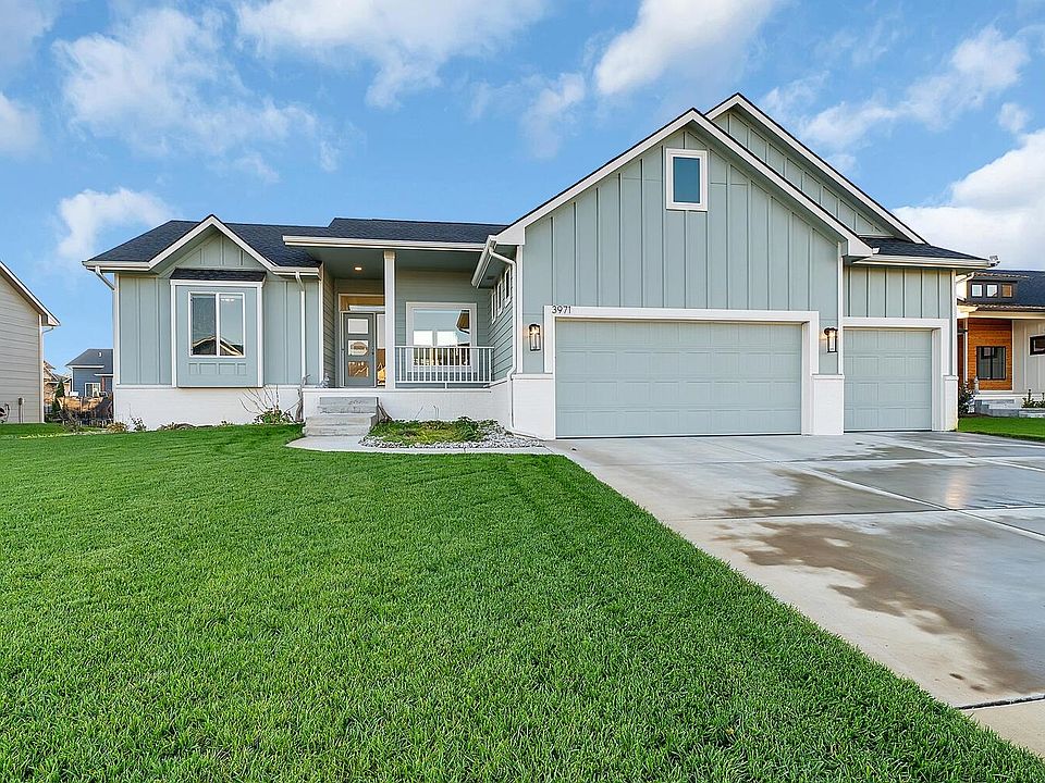 This custom build Moeder home is just waiting for its new owners and just in time for the holiday season. The sellers loved the larger living room and split floorplan this home offered. As you enter, you will see the abundance of windows that add natural light across the home and open floorplan. This was a very popular Moeder plan and is still being built in new construction neighborhoods across the city at a higher price than being offered here. The main level living room is larger than most with luxury vinyl flooring that carries through to the kitchen and dining areas. The kitchen was built with oversized island, gas range, larger walk in pantry complete with shelving to use as a butlers pantry for appliances, built in wall ovens, quartz countertops, and separate bar/buffet area in kitchen. The primary bedroom wing has attached bath with tiled shower (complete with upgraded tiling), 2 sinks, quartz countertops, separate water closet, walk in shower, and pass through access to main level laundry. In the basement is a large rec room with view out windows, 2 full bedrooms, 1 full bath with custom spa design for soaker tub, 2 storage rooms, desk area for gaming, and more. This same home sells today for over $460K so come see this home at a deal before it is gone and have instant equity.