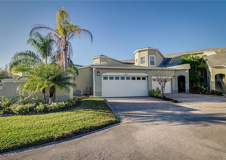Welcome home to this gorgeous water front carriage home condominium located in the desirable Carillon Lakes. This community is nestled between Tampa and Orlando, just off the Polk Parkway and I-4 corridor. Carillon Lakes offers a robust landscape throughout the community that features fresh water lakes, nature trails and beautiful wildlife. Residents can enjoy a variety of outdoor amenities within the comfort of a private and gated community. This three-bedroom, two bath home has been meticulously maintained and updated with GE stainless steel appliances, new carpet in all three of the bedrooms, updated light fixtures, plantation shutters and new paint throughout. New A/C in 2019. The home is spacious with an inviting feeling as you walk in overlooking the beautiful lake views. Enjoy a split floor plan with a large master suite that opens up the screened in patio. The property additionally has a two-car garage on the ground level with indoor and outdoor entry ways to the home. This home is a must see! **** Calling for Highest and Best by 2pm Friday 2/5/2021******