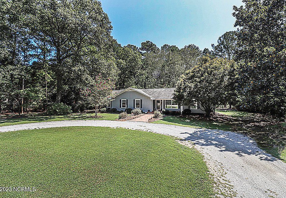 REMARKABLE CUSTOM BUILT home nestled on private lot with KOI POND and small putting green!! ALL ONE LEVEL with beautiful HARDWOOD flooring and NEW PAINT throughout! Spacious Great Room with lovely fireplace! UPDATED vinyl windows throughout! Large KITCHEN ISLAND with wrap around breakfast bar and TWO pantries! Owner's retreat with DREAM CLOSET 225 sq ft!!! Outdoor PATIO and covered porch ideal for entertaining guests! Extended lot for privacy! Circular drive for additional parking! 19x12 Storage shed. Don't miss this one! Short commute to Rocky Mount, Greenville and HWY 64!