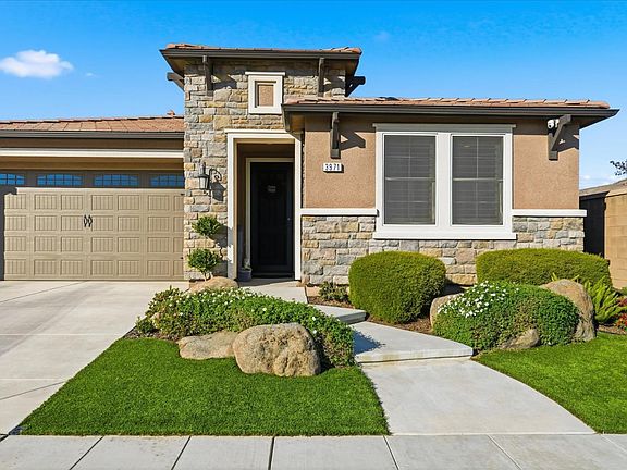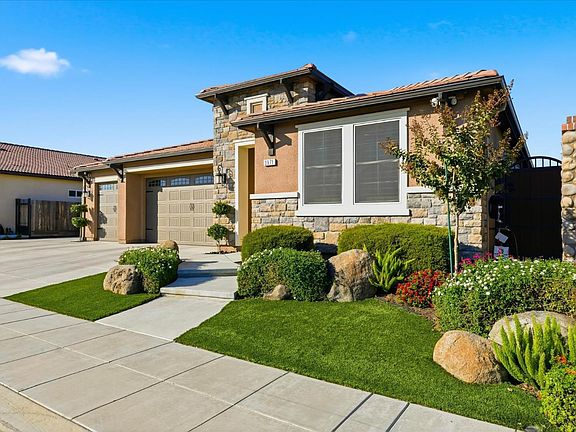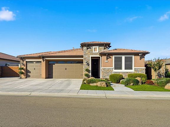 Welcome to paradise. This stunning Leo Wilson home has it all ! Huge side yard includes huge permitted RV parking behind custom gate with full hookups and large storage shed with roll up . Owned solar, new whole house fan and solar screens make for an energy efficient dream home. This beautiful split floor plan is upgraded throughout. Large kitchen features alabaster color cabinets, granite countertops with quartz island, upgraded appliances, tech desk and huge butler's pantry. All flooring in living area is 8x48 wood look tile with carpet in the bedrooms. 3 Bedrooms with a flex/office space along with 3 bathrooms. Step outside to your own incredible heated saltwater pool and spa. Relax by your beautiful pond with waterfall feature, 2 covered patio areas with fans and built in BBQ. This home is secluded from neighbors sitting on a end lot with a cul-de-sac facing back yard . The front of home faces a neighborhood park within walking distance to Clovis East complex and conveniently located to the new Loma Vista amenities for shopping and dining . Every inch of this spectacular home shows pride of ownership! Check out the virtual tour