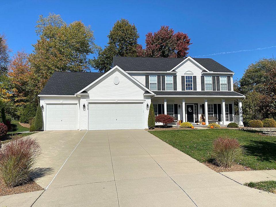 Breathtaking 4 bedroom dream home in King's Ridge! A welcoming 2-story foyer greets you with updated vinyl plank flooring continuing throughout the majority of the main level. Find your culinary inspiration in the stunning remodeled kitchen with 2-tone Kraftmaid cabinets, soft close hardware, above and below cabinet lighting, slate GE appliances, granite counters and a large island with seating! The kitchen opens to the huge great room and the morning room with vaulted ceilings, walls of windows and access to the deck. Host holidays in the formal dining room then gather in either the great room or front living room. Lovely first floor office with French doors, too! Upstairs, all 4 bedrooms are spacious. The master suite is enormous and offers a 12-feet deep walk-in closet and sliding door to a private full bath with dual sinks, a garden tub and separate shower. Fresh paint and carpet throughout! The walkout full basement has fantastic finishing potential or use as-is for storage. It's even plumbed for a full bath! First floor laundry room with a sink and built-in drop spot as well as garage access. Fully insulated and drywalled 3-car attached garage with an extra deep third bay, pull down steps to the attic, plus a read overhead door to the backyard - convenient for lawn equipment or outside toys. The park-like backyard is incredible! It boasts a huge stamped patio, an 18x17 covered deck and mature landscaping - the perfect place for entertaining! A must-see home!