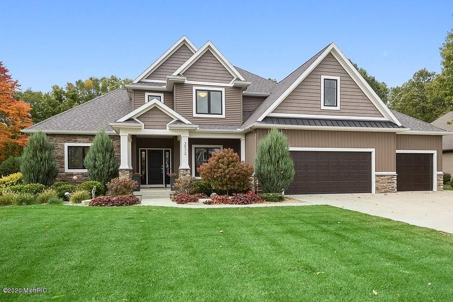 Stunning craftsman style home in Lakeshore Schools! Impeccably maintained, upgraded finishes, and quality throughout! Situated on wooded lot offering sensational views from the 2 story great room, master and kitchen. Main floor den/office, open kitchen, 9' ceilings, marble gas fireplace, KitchenAid appliances, Quartz counters and gorgeous mocha cabinets w/soft close doors/drawers. The main floor laundry is conveniently located off mudroom and has an abundance of closet/storage space! The Master bedroom is serene and tastefully decorated w/neutrals tones, large bath & walk in closet. The upper levels boasts 2 add'l baths, 3 bedrooms (one could be bonus room), pleasing colors and large closets. The full basement is plumbed for 4th bathroom and could be finished for add'l living! Yard has been professionally landscaped and lovely deck off kitchen makes entertaining a breeze. Truly ready to move into and enjoy!