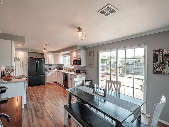 Updates Galore! Pinterest perfect home w/ tons of updates including all new fixtures, laminate flooring, large kitchen w/ freshly painted kitchen cabinets, updated appliances and more. Enjoy your beautifully landscaped backyard with pressure treated deck, raised beds with new bark mulch, large shed and lots of space for regular and RV parking. Bathroom is split between shower and sink allowing for dual use. Plenty of storage space in th