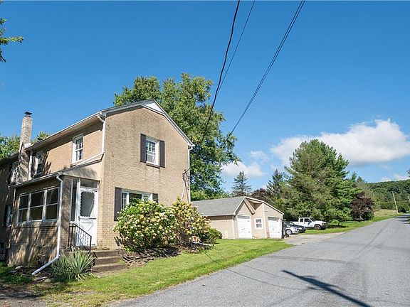 Looking for your own private oasis? Look no further! This brick farmhouse build in 1880, has been completely renovated with all of the modern conveniences while still maintaining its historic charm. The unique architecture of the entryway is accented by natural lighting and features spacious closets for storage. From the large eat-in kitchen with tile floor and modern appliances, to the wall of windows over the sink that provides stunning views of the backyard wildlife. The first floor also features a full bathroom an office and a comfortable living room with a wood burning stove. Upstairs you will find a primary bedroom suite with a large walk-in closet, built-ins and dressing/vanity area. There is also a beautiful full bathroom, and two more bedrooms on this level. The oversized detached garage provides plenty of storage space, and the above ground pool with wraparound deck is perfect for summer fun. With one acre of beautiful land to call your own, this home truly has it all!