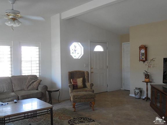 This checks off all the boxes! 3 bedrooms, 2 baths, 2 car attached garage, mountain view, hard surface floors, corian counters in spacious kitchen. Beautiful neutral desert color scheme with ceramic tile floors laid on the diagonal in the living, dining, kitchen, laundry, family room and master bed and bath. Three, yes, THREE closets in the master bedroom, really! This home built by Silvercrest has plantation shutters in the living room. The laundry room has it's own closet and opens to the attached garage. The covered patio is protected from the afternoon sun. There is another yard and patio space off the master bedroom easily accessed by a sliding glass door. A home this new from Silvercrest has dual pane windows, 6 inch exterior walls and quality throughout. You can buy this beauty tastefully furnished and turn key (per inventory). Enjoy it right away with no fuss, or rent it seasonally and get some income too. Yes, the golf cart is included too. Put this one on your list!