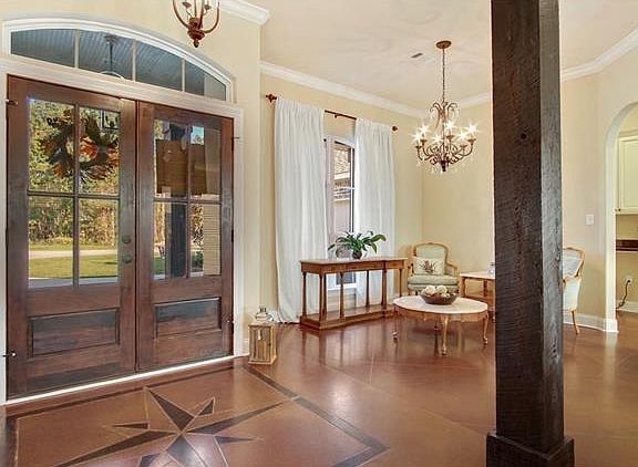 Prime Cul-de-Sac Lot in Gated Bedico Trace. This 3 yr old home is BETTER than new! Impressive Custom Built 4 BR, 2.5 BA w/Open Floor Plan accented w/Cypress Columns in/out. Spacious Living w/whole house Scored/Stained Concrete Floors (no carpet). Specialty Kitchen boasts 42" Cabinets, Granite, Stainless, Butler's Pantry & Pot Filler. Retire to the Deluxe Master Suite w/double vanities, oversized tub & shower w/rainhead. Large covered patio w/retractable sunshades, Firepit in fenced Backyard & Solar Panels