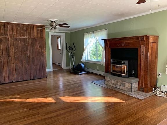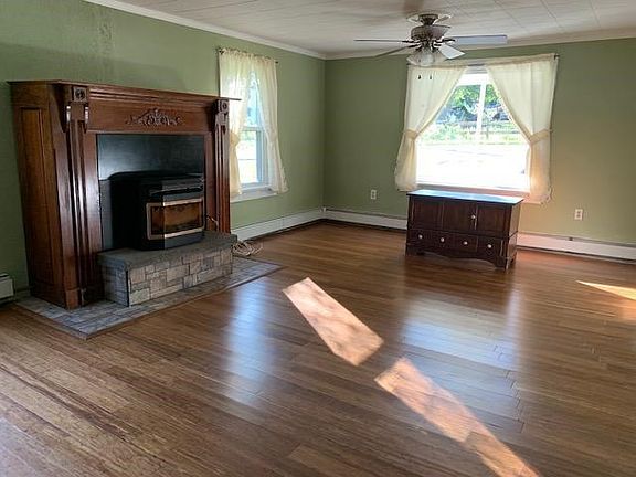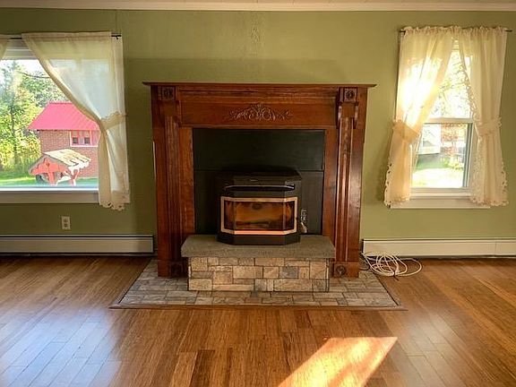 This lovely farmhouse has all the charm that you're looking for. Plus, it sits on over 6 acres! It features five bedrooms and two full baths, so there's room for the whole family. There are additional rooms that could easily function as an office or craft room. The large kitchen features a center island and has plenty of cabinets. The master bedroom has an adjoining, spacious full bath. There is another large full bathroom downstairs as well, it has double pedestal sinks. The living room showcases a beautiful mantle with pellet stove that you can use to supplement the heating. There are 2 decks, front & back, to enjoy those fresh spring evenings, summer days, and crisp fall mornings. It also features two detached garages on either side of the house. This comfortable home has so much to offer, call today.