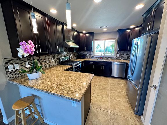 Beautiful Newer home built in 2018. The home has 3 Bedrooms, 2 Full Bathrooms, Granite countertops throughout, Engineered Hardwood Floors, Kitchen has tile back splash with Undermount Sink, Undermount lighting, Gas Range, Premium Vent-A-Hood custom kitchen ventilation hood super quiet and Pantry. The dinning area rolls out to a expanded cement patio and a well kept large backyard. Also, there is a newer gazebo. Also a Tankless Hot Water Heater. Garage is equipped with a smart ventilation system that runs on whisper mode to fully ventilate the garage of any trapped fumes for 1 hour. This home is a sub division of homes built in the last few years. The home also comes with a large storage shed in backyard. Available: 9.26.25 1 Pet under 50 pounds with an additional $1,000 deposit and $50 pet rent per month. Washer and Dryer hooks ups Home comes with a refrigerator The Owner pays: Sewer NO smoking month to month rental agreement Rent: $ 2,325 Deposit: $ 2,800