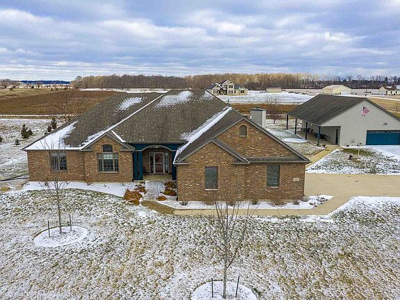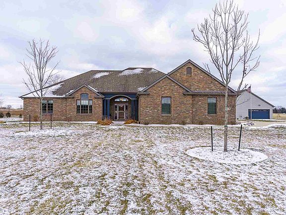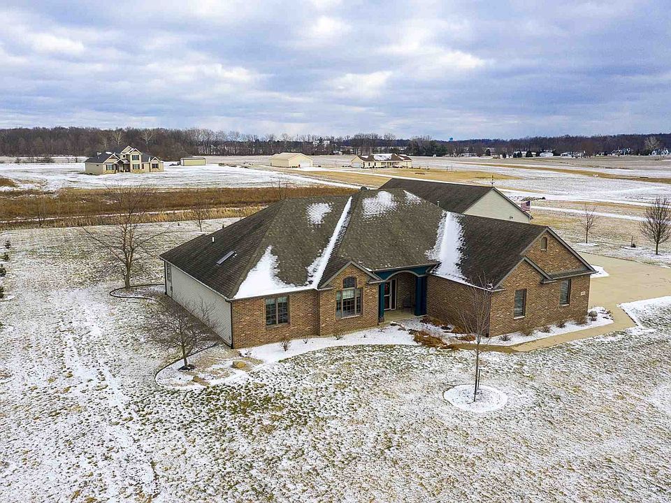 Home is contingent upon relocation signing the verbally accepted offer. Classic Ranch with 3 bedroom/2.5 baths. Spacious rooms throughout featuring over 2800 square feet. Located on 2.88 acres. Large foyer greets you as you walk through the front door into the living room that has 12 ft coiffeur ceilings and offers great space. Huge kitchen with granite counter tops. Plenty of cabinets/counter space, breakfast bar and a walk-in pantry. There is also a dining area and a breakfast nook. Family room is open to the kitchen and dining areas which offers great space for entertaining. Large master suite with trey ceilings and double closets. Master bath has double vanities, jacuzzi tub, and shower. The other two bedrooms are nice size. The second full bath features a skylight. Laundry area with a utility sink. The patio behind the home is 15x36 and has a sunscreen awning. The 30x60 pole barn has 100 amp electric service. Plus a second patio area. New furnace was installed March 2020 and is still under warranty. Water heater new July 2020. New carpet in the living room and family room. Hardwood floors in the bedrooms, dining and family rooms. This property is loaded with extras! Plus conveniently located to shopping, restaurants and 69. "Special Financing Incentives available on this property from SIRVA Mortgage." Hot tub, dart board & basketball hoop in the barn negotiable. Buyer to accept prior survey.