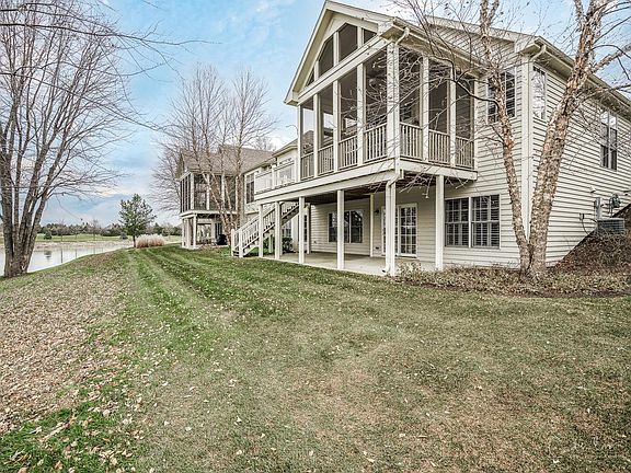 Ranch living with sweeping views of Coyote Lake, the ever-popular Augusta model in the Lakes of Boulder Ridge, takes advantage of the Lake with a bug-free screened in porch, open air deck and a patio just outside the sliding doors of the walk-out basement. Inside you will find soaring ceilings, an open floor plan, private den, custom plantation shutters, hardwood flooring and laundry/mudroom all on the first floor. The spacious kitchen includes loads of cabinetry and counter space-perfect for the serious cook-and is next to the dining room and opens to the living room. The primary suite boasts a bay window, architectural ceiling, large walk-in closet, and luxury bath with soaking tub, and double sink vanity. The walk out lower-level amenities include a family room, third bedroom, office, full bath, 2 walk-in closets and a gorgeous built-in wet bar. It is the perfect space to entertain, enjoy a movie, work from home or just a private area for guests. Enjoy all that Boulder Ridge has to offer with voluntary golf and social memberships available. Close to shopping, restaurants, parks and so much more. Welcome Home!
