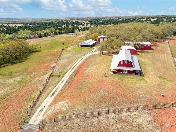 80 ACRE RANCH WITH ONE OF KIND BARNDOMINIUM HOME. Wonderful opportunity for country living, yet 15 minutes to Guthrie, Ok. HOUSE FEATURES 22 foot Barn wood lined ceilings,wood beams running the length of the home, custom features are large kitchen island for entertaining, custom barn doors to the large Bedroom downstairs, LARGE OPEN LOFTS upstairs(no baths upstairs) each loft has closets,so could be bedrooms. Located 30 minutes to the Lazy E. THE HORSE BARN HAS SIX 12X12 STALLS , feed room, wash stall with hot water tank and large tack room. Detached garage is 30 x 40, separate shop and trailer parking barn 30 x 40. LARGE POND Interior property is all fenced with PONDEROSA fence. Barb wire fence for the outer borders and custom pipe and cable gate at the front of the property. Room to ride your horses. Wildlife are abundant on this ranch. This is wonderful property that is secluded and quiet.