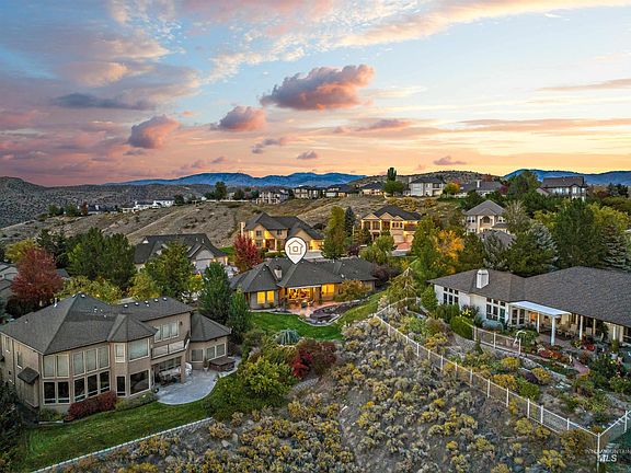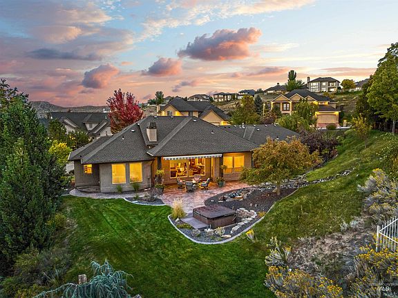 Stunning single level perched above in the Boise foothills w/ breathtaking scenic views in coveted Quail Ridge! Upon entry, you'll be greeted by an open & spacious floor plan, filled w/ an abundance of natural light. The living room is the ideal space to relax & unwind, featuring a cozy fireplace & large windows that frame the picturesque views of city. Ideal floor plan- over 2300sf, open concept, 3 spacious bedrooms, 2.5 bathrooms + an office. Gourmet kitchen is equipped w/ stainless steel appliances, double oven, dual dishwashers, granite counters, ample pantry & beautiful cabinetry that seamlessly flows into the dining area, which is perfect for hosting family gatherings. Owner's suite features private patio access, dual sinks, soaker tub + walk-in closet. Step outside to the backyard, where you'll discover a serene oasis w/ an expansive patio, an outdoor entertainer's paradise, ideal for barbecues, relaxation, waterfall, pond, lush greenery that provides a sense of tranquility. 3 car garage w/ extra space