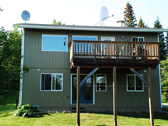VISIT WWW.BRENMARKBEAUTY.COM "Buyer's Representation Honored and compensated at 3%" The time has arrived to sell this great piece of Property. The home was built in 2001 and is situated on 2.48 acres of nicely wooded real estate that ensures a private setting. The property is located 7 miles out East End on Brenmark Road (1 mile before Fritz Creek). The location provides a short 10 minute drive to Homer, and offers an amazing rural Alaskan experience. This property will suit a buyer that values a well built house, low maintenance and utility costs, the environment, and an exciting yet peaceful place to call home! It’s a charming reverse floor plan home, and at 1,536sq ft. it is cozy, but feels very spacious. The lower level of the home was built with 2 bedrooms, but through a remodel project one of the bedrooms was eliminated to create a nice large family living area. The lower level also has a bathroom and a laundry room that has proven to be an excellent asset. The upper level of the home is brightened by 2 large windows in the dining/living area with southern exposure and partial views of Kachemak Bay and Sadie Peak. The master bedroom and another bathroom are located on the upper level along with a wonderful kitchen to cook gourmet meals. Additionally, there is a pleasant little office with a generous built in bookshelf and a window that gets the morning sunlight. There is an inviting 12x16ft cedar deck attached to the upper level of the home that gets a ton of sun and very warm in the summer months. There is very little wind and it is a great spot to enjoy coffee in the morning and a BBQ later on! The house was built to 5-Star Energy specifications in 2001 and was recertified on March 7, 2007. The cost effectiveness to operate this home is a very strong attribute. Outside of the home provides an endless list of activities. The lawn is flat and has lots of space for games, campfires, and gardening. There is a great flower bed surrounding the house and a neat rock garden along the driveway. For the adventurous person, there is a regulation horseshoe pit hidden in the woods. Brenmark Road loop is a safe place to bike, run, or take a leisurely walk. Other Features and Notes: •There is a large carport attached to the house. Converting the carport into a fully enclosed garage is a realistic opportunity for those looking to make property improvements •A separate storage shed •Borough will be making road improvements to Brenmark Road in 2015 by raising the grade widening the road. •Stone Step Lake and beach access a short walk away