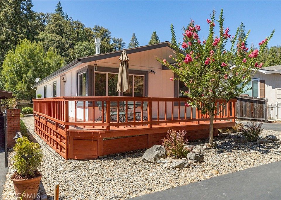 Enjoy a low-maintenance lifestyle in the 55+ resort community of Sierra Springs Village in Bass Lake. This attractive 2 bedroom 2 bathroom manufactured home is priced to sell. Upon arrival you will see a blooming Crepe Myrtle tree welcoming you onto the restored and freshly stained patio deck area. Sit and enjoy the beauteous wooded views as you sip coffee or cocktails. Enter the home to find the vaulted ceiling and duel pane windows that allow light and life to enter the room. A convenient, cozy gas fireplace is sure to provide comfort in the cooler seasons. The bright kitchen has ample cabinetry with pull out drawer organizers. Laundry room is equipped with a new Whirlpool washer and dryer, large freezer and an abundance of storage. Main bedroom with en suit provides private access to the back yard. There you will find a storage shed, a generous sized tidy yard space and a hobby shop. The AC has recently been serviced and a Firman generator will grant peace of mind should the power go out. Other features include a newer snow load bearing roof and a 2 car attached carport. All of this is just minutes from the Pines Village amenities and a short distance to Yosemite National Park. Schedule your showing today before it’s too late. Stay tuned for more Photos!