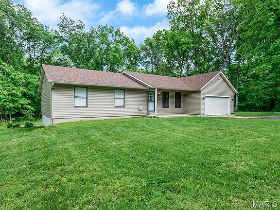 Four bedroom ranch style home on just under 3 gorgeous acres that backs to wooded privacy. Open floor plan with spacious living room and cozy wood burning fireplace. The main level hosts formal dining area, open kitchen and breakfast nook, living room that opens to 16 x 16 deck, 2 bedrooms, guest bath, plus the roomy master bedroom en suite. The nearly fully finished walk-out lower level adds the 4th BR and large finished areas for additional living space & work-from-home office. Newer roof, insulated garage door, entry door & nice storm door with concealed screen feature. The location just minutes off I-44 and tucked behind Shaw Nature Reserve & a Missouri State Park makes this property a desireable find. Imagine sitting on your deck & watching deer, turkeys & other wildlife as they stroll past. Enjoy your own camp fire & have the ability to store your RV on your own lot (behind home out-of-sight from road) save on storage fees.