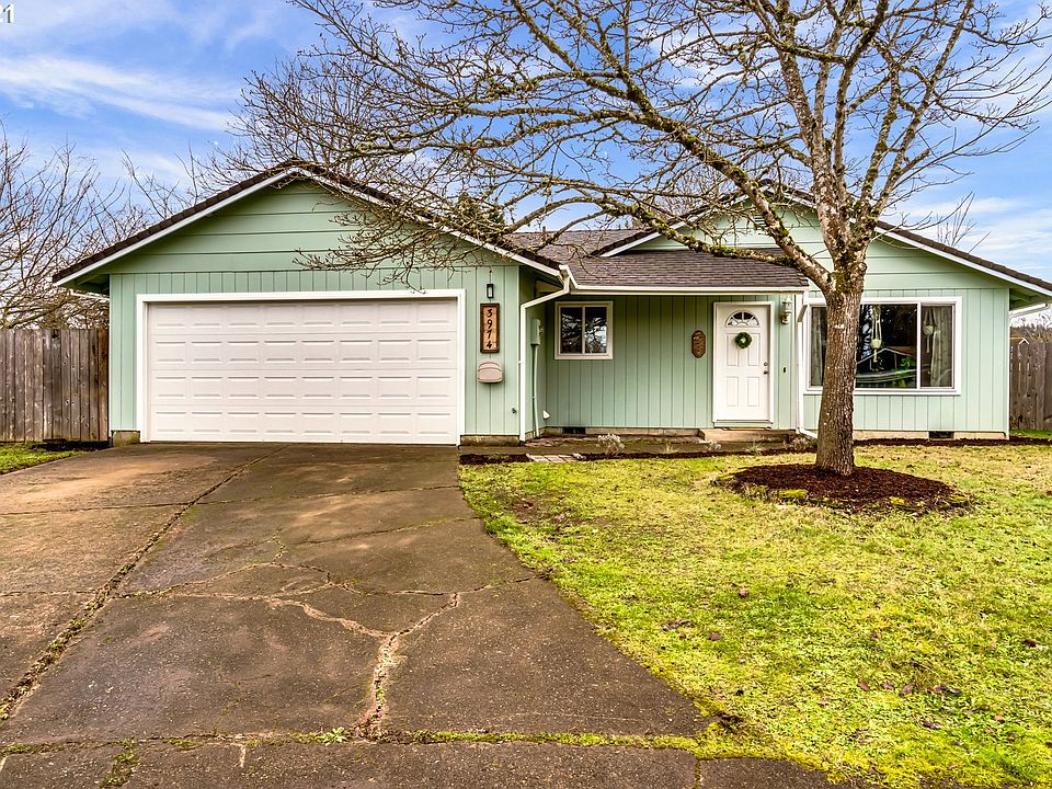 Great Eugene home in a sunny, quiet cul-de-sac has a lot of features to offer. Updated interior, bamboo flooring, large fenced yard with garden beds, blueberries, chicken coop and water feature included. Extensive plant list provided at showings. Come make this home your own & fall in love! Large garage, all appliances included. Open House Saturday 12-2pm~
