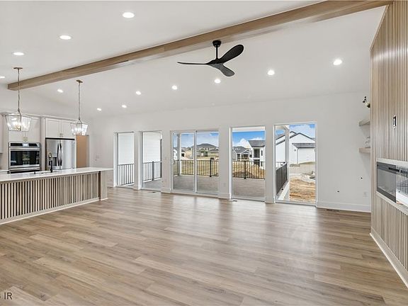 Reward yourself every day with this thoughtfully designed modern ranch featuring 3603 sq ft of of finished space contains 5 bedrooms plus a bonus flex room in the basement. Impeccable finishes throughout, with beautiful custom trim designs, hidden walk-in pantry, large 16x20 covered deck and more! Stunning double glass French front doors open to an impressive entry with a sweeping 11’ vaulted ceiling. This space flows into the wide open living area that includes a living room, dining area and a marvelous kitchen with stainless steel appliances. The large primary bedroom on this level boasts its own expansive bath with double vanities, heated floor, smart mirrors, extra large shower, and a vast closet complete with custom built-ins. Two more bedrooms and a bathroom finish the main level. The 3-car attached garage has been upgraded with an ultra-quiet belt drive opening system w/ WiFi/App accessibility. Walkout basement is spacious with a bar and entertainment area, flex room, two more bedrooms and 1 and half bathrooms. Home is located on a cul-de-sac and minutes from the future greenbelt trail. Magnificent design of this home will leave you awe-struck with its luxury and elegance. Agent has interest in the property.