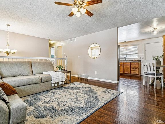 Don’t miss this lovely home in the Highpoint neighborhood of Aurora! The upper level in this home features gorgeous upgraded flooring, shiplap wall and an open floor-plan with an abundance of natural light entering through one of the many windows throughout. The kitchen boasts beautiful light colored cabinetry, stainless steel appliances and an eat-in kitchen space that is perfect for meals with the family! The upper level features 2 bedrooms and 2 bathrooms including the spacious master suite. Expand your living space on the lower level with a full bathroom and two additional bedrooms; one of which can be used as a flex space for your customization. Cozy up next to the fireplace in the downstairs bedroom, on those cold Colorado nights. Spend your days enjoying the outdoors in the backyard on the raised Trex deck, patio or in the large and private yard with privacy fencing and a utility shed for additional storage. Conveniently located down the street from Horizon Park, various schools, and just minutes from multiple parks including Quincy Reservoir, shopping & dining. Schedule your private showing today!