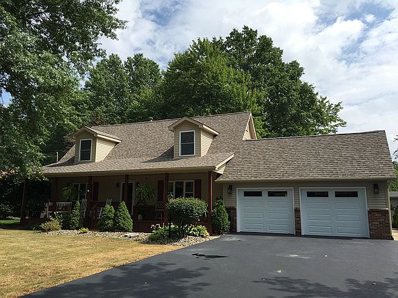 "Life is Better at the Lake" Walking distance to lake! Quiet private street. 3 bedroom, 3 full bath cape cod. First floor master suite. Kitchen, dinning area and living room with hardwood floors. Family room with vaulted ceiling and wood fireplace, 13x15 study with vaulted ceiling and views of the back yard. New Roof, Front Porch and Dormers; 2013. New siding, A/C and Furnace, front landscaping; 2016. Back patio, landscaping, spa and electrical service; 2018. 20x16 out building; 2019. New carpet; 2020. Kitchen updated with all new appliances (2022) and baths are updated. Rec room in basement. Over 2,000 sqft. Rooms are large. Many updates since 2006, electric service, new drive with extra parking, study/den room addition 13x15, screened porches 13x11, 10x16, picture window family room, sewer, privacy fence, water softner, landscaping, front door, carpeted family room, stairs; and upstairs bedrooms. Awesome home walking distance to the Lake!!