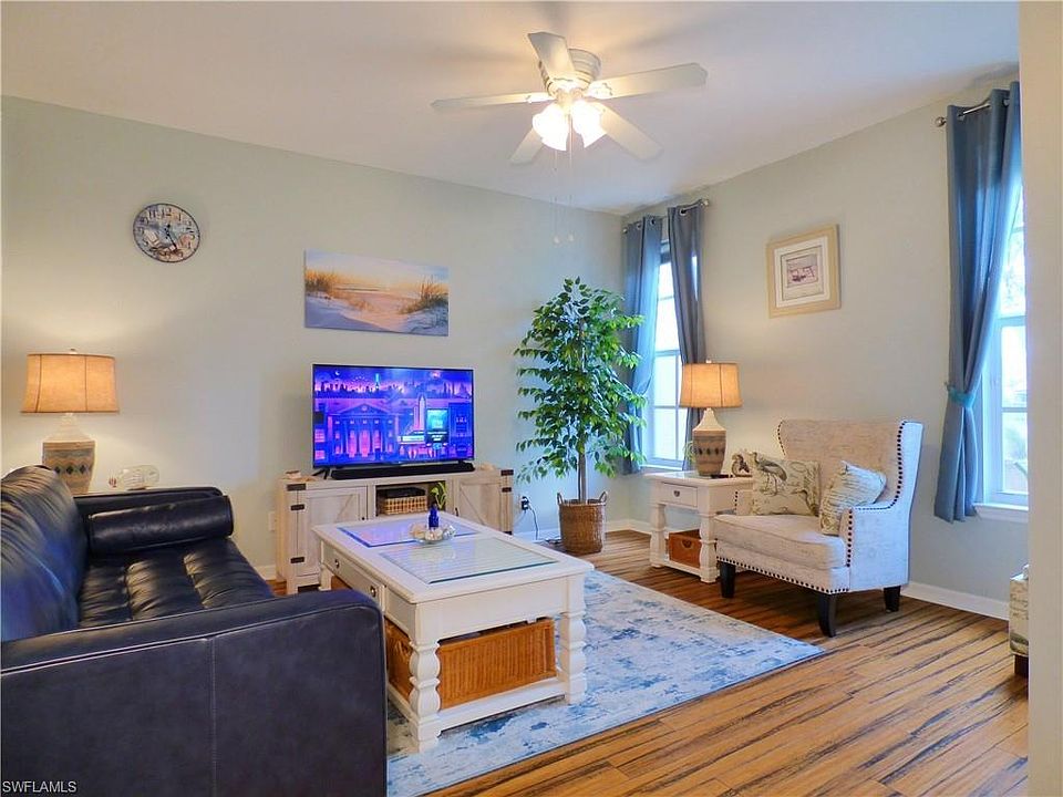 The only unit available right now, and it happens to be one of the nicest in the community. Click the link for more interior pictures, aerial pictures & video. This unit has a 2 car garage, lake view, with a large backyard area just outside of your screened in lanai. The townhouse has been beautifully updated, and meticulously maintained. Inspections will be no problem, and your satisfaction will be easy to please. The impact windows and doors are an expensive upgrade that you will enjoy from day one, giving you peace of mind for years to come. You have a beautiful view across the lake, looking towards the fountain and pool, yet far enough away that the sounds of the pool area are never a factor. San Simeon is a secure, gated community in a quiet and centrally located area of Fort Myers with low HOA fees, a resort style pool with hot tub, great fitness center, kid's play area, and much more. Your new townhouse has upgraded vinyl wood flooring, walk-in closets, pantry, recently carpeted stairs, front-load washer and dryer, 3 bedroom and 3 bathrooms, and all of the appliances are newer. The HOA fees are some of the most affordable in the area, yet you get security, and so much more.