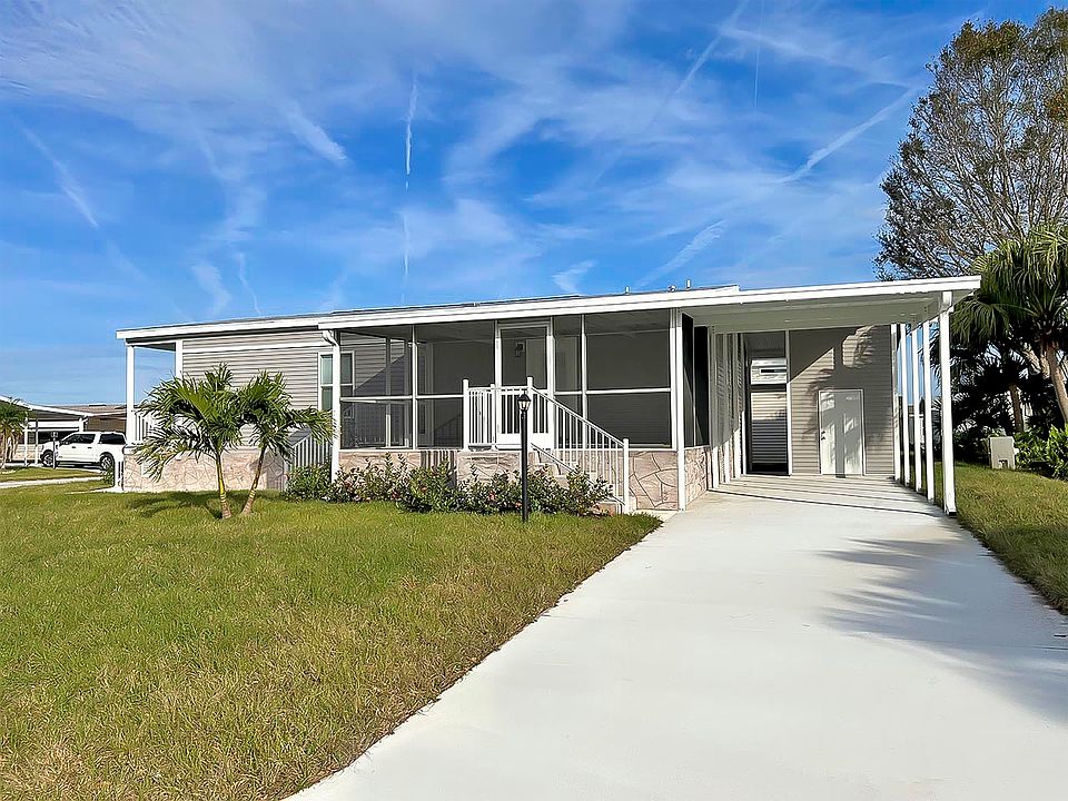 This 2 bedroom 2 bath split floor plan Palm Harbor home is walking distance to the Clubhouse and pool. It includes a large master bedroom suite, spacious living room, nice-sized guest bedroom, dining room and kitchen that leads out onto the front porch. Master bath has double sinks and double mirrors! The side porch is large, screened-in & spacious. Extra long driveway and carport with a shed. This home can be yours! Schedule a tour with Crystal today.