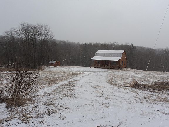 Make this 1 1/2 story contemporary cabin your vacation getaway or adapt and use year around. Log veneer exterior siding and all natural wood walls and ceilings give a cozy feeling. The LR/DA has a vaulted ceiling. Also found on the first floor is a working kitchen, bedroom with closet and a full bathroom. The upper level features a sleeping loft with balcony. Fully applianced and comes nearly fully furnished. 10.13 acres+- with over 800' of road frontage. The beautiful land lays level to slightly sloping. Pleasant country views from the front porch. Includes Cabot Oil and Gas Lease.