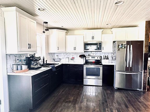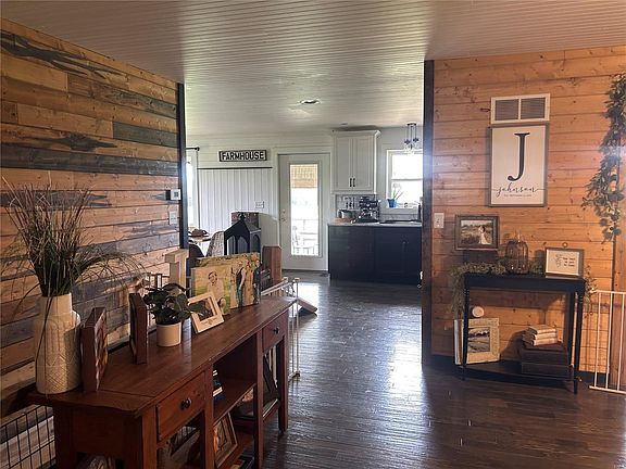 Beautifully remodeled farmhouse. Bruce hardwood floors, carpet & tile. Stained & painted tongue & grove pine on walls & ceilings for modern rustic feel thru entire house. Most windows & exterior doors, garage door/opener & all interior doors new, solid hickory wood w/some 36” openings & ramp in oversized gar. into house for easy access for people & dogs. Remodeled kitchen has custom white upper & darker stained lower cabs, stainless appl, deep sink, backsplash & countertops. Kitchen opens to large DR w/walkout to porch. 3 large beds on main floor w/1 being used as TV room. LL office has access to large cedar closet. MBR en-suite w/walk-in closet &washer/dryer connections. 2nd bath includes huge walk-in shower & leads to 3rd bed or DR. New cedar front porch & ceiling, custom flagstone steps, stamped concrete walk leads to parking under carport, all poured in 2021. Some new ext. siding & gutters 2022. New plumbing,2 H2O heaters, new HVAC/AC! Home and property are being sold as-is.