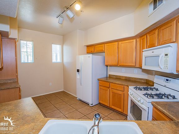 Charming 2Bdm 2Ba Condo in a Gated Las Vegas Community. This home features elegant ceramic tile flooring throughout the main areas, with cozy carpeting in the bedrooms. The open living and dining space is highlighted by large windows with blinds, a ceiling fan, and warm neutral tones that create a welcoming atmosphere. The kitchen boasts natural wood cabinetry and a breakfast bar. The primary suite offers a walk-in shower, separate soaking tub, dual-sink vanity, and generous storage. Additional highlights include a laundry area, arched entryways, stylish light fixtures, and assigned covered carport parking. Ideally located near shopping, dining, and freeway access, this condo offers comfort and convenience. Tenant pays all Utilities. Pets are not allowed. This property allows self guided viewing without an appointment. Contact for details.