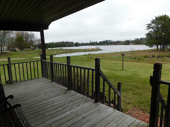 MACK LAKE WATERFRONT- Well built 3 bedroom, 1 1/2 bath on 114 feet on Mack Lake. Stone fireplace in open living room with cathedral ceilings. Master bedroom and main bath on main level. Door wall and 24x8 covered deck facing the water. Newer steel roof, covered walkway to 2 car garage, with additional room for guests or a game room. Covered picnic area and bon fire pit at the water. Well kept, and ready to move in or use, on two lots. D-306 $129,900