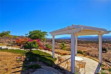 Perched on the mountain's rim above Temecula Valley and surrounded by open nature, sits this beautifully appointed one story Silvercrest Mfg. home with access to 25 miles of designated quiet remote horse trails that are maintained by Oak Ridge Ranches. This private sanctuary retreat has 20 Acres of privacy and 360 degree panoramic views of the mountains & valley. A horse lovers dream with one small working arena and acres of land to build a guest house, barns, additional arenas or grow vineyards. Landscape has many varieties of fruit and palm trees on a drip system. Ranch includes two stall barn with corrals, tack shed, wash rack, two covered shelters, dog kennel with separate run, and 3- 40 ft storage containers. Property is fully fenced with two wells and 5,000 gal. water storage tank. Bright open floor plan with vaulted ceilings, 4 bdr. 2 bath, 2,652 sq. ft. Newly installed flooring & paint. Kitchen boasts granite counter tops, island and walk in pantry. Huge family room with wood burning fireplace. Large master bedroom with two walk in closets and master bathroom with separate tub and shower. Enjoy the magnificent sunsets on your patio or gazebo while sipping local award winning wines. This ranch is within minutes to local wineries and town.