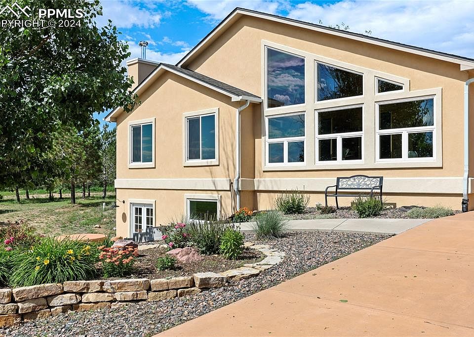 What a home!!! With almost too many amenities to list, this 5 bedroom, 3.5 bathroom home is awaiting is new owners. Sitting on over 7 acres of beautiful land in the foothills of the Rocky Mountains, this landscaped and carefully designed oasis is sure to excited a home buyer! Sitting at the front of the home is a large sunroom with floor to ceiling windows looking directly at Pikes Peak. The large kitchen with updated appliances and huge center island is the perfect gathering space for any meal. Attached to the kitchen is a large walk-in pantry that leads to the 2 car attached garage. Upstairs are 3 bedrooms and 2 full bathrooms that includes the master suit with a large walk- in closet and attached 5 piece bathroom that has a massive walk-in steam shower. Also on the main level is a half bath that is perfect for guests. Moving downstairs into the fully finished basement is 2 full bedrooms and a 3/4 bath with a lovely updated design. This basement was made for entertaining with a home movie theater, wet bar (with ice maker and wine fridge) and a flex space that the sellers use for a home gym. This home gym walks out onto a large front patio. The outdoor space on this home is where it is at! Over an acre of land in between the home and the 50x 60 shop building is landscaped and adds so much to the home. The landscaping includes: a covered area of 25 x 20, a greenhouse, a large chicken house and run and a two car carport on top of the treed walking trail. In front of the shop is a 30' long outdoor kitchen with granite countertops and a pizza oven. Inside of the shop of dreams is a 2 post car lift, a kitchen /bar area for entertaining and 2 additional rooms for storage or business operation possibilities. The shop also has a half bath and RV electric hook ups and clean outs. This amazing property has an additional 2 car carport and a small gas station (not operational) that adds so much charm to the property. Amazing views, amazing details and room to grow!