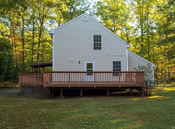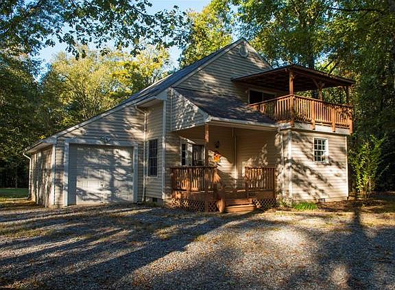 You'll love this cute water access home on the private side of Lake Anna. Spend the day boating, fishing or swimming and then come home to watch the sunset on your over-sized deck! Large family room with beautiful hardwood floors, first floor bedroom and bath with 7'10"x 6'10" walk-in closet. Exterior door from bedroom leads to rear deck. Two large bedrooms on second floor with 10+ ceilings, massive walk-in closets and a full bath. One upstairs bedroom offers a covered walkout balcony. Expansive decking, covered side and front porches. NEW heat pump and hot water heater. Large private shaded back yard. Located within walking distance to common area, boat ramp, dock, picnic area and small beach!