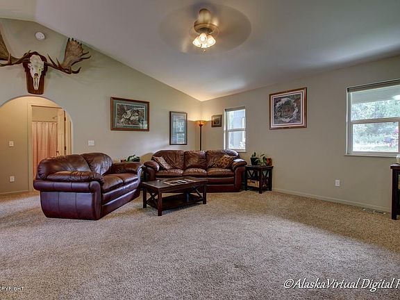 Gorgeous Custom ranch home.Open concept.Many amenities including 5* energy rating,vaulted ceilings,arched entry ways,covered front porch,massive back deck,Large Master w/walk in closet & built in shelving,double headed shower w/tile surround,over sized 2 car garage! Great neighborhood & walking distance to Seymour Lake.Unlimited trails for all your Alaska adventures & 1 mile from Little Su River .