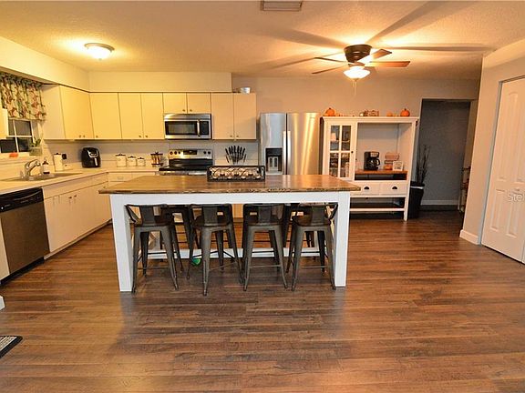 One or more photo(s) has been virtually staged. !! NEW LOWER PRICE !! AFFORDABLE.. CONVENIENT...UPDATED 4 bedroom home in the city limits of Zephyrhills. Located 1 block from city dog park and 3 blocks from city recreation park. Renovated bathroom with marble tile shower, new vanity, new paint and new tile flooring. NEW EXTERIOR PAINT 2018, NEW BATH 2018, NEW AC 2018 WITH NEW DUCT WORK, NEW TANKLESS WATER HEATER 2020, VINYL PLANK LAMINATE water, and resistant flooring installed in 2020. Renovated kitchen is very open and allows free flowing interaction with living room area. Fenced back yard is great space for pets or children to safely play. 4th BEDROOM would make an ideal home office or exercise studio. Original windows replaced with double pane energy efficient windows. Seller is including 2 detached utility sheds with acceptable offer. Large shed measures 10'x16' and makes a great workshop space.