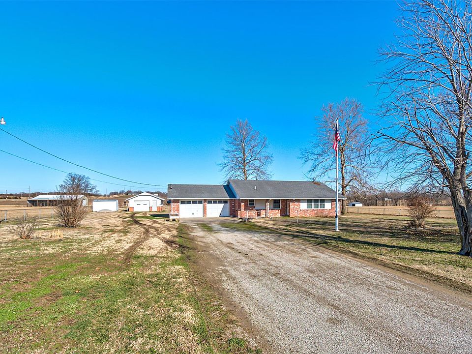 Well maintained, one owner country home on 14 peaceful, fully fenced acres just north of Ramona! Plenty of room for livestock with a 40'x60' barn with concrete floor, five stalls, water and electric. Also, two small barns (20'x30' and 24'x20') with water/electric to one and extra detached garage. Interior features include wood burning stove, eat-in kitchen, wet bar, large master, large laundry, jack and jill bathroom with double vanity, and open floor plan!