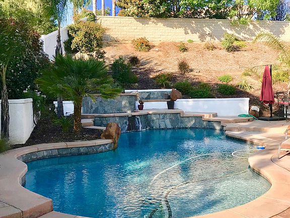 Curtain rising! First time on the market. NO HOA! What an amazing opportunity here. If you have been looking for a fantastic Temecula cul de sac, pool home, welcome home! A soaring foyer will lead your guests to bright and open living space. Picture yourself in a beautifully decorated gathering room with gas fire place and built-in media niche. Efficiently designed kitchen with ample storage and counter space is open to gathering space and offers views of your sparkling pool and spa. 3 spacious bedrooms with one optional 4th bedroom/den on main floor plus an additional mega media loft perfect for a pool table, movie room or entertaining. Enjoy your resort style back yard complete with putting green, fire pit, sparkling pool with spa and built in barbecue. Enjoy sipping on lemonade on a hot summer's afternoon enjoying the shady retreat of your covered patio. NO HOA. Come see Longleaf today! Located within walking distance to award winning Temecula Schools including Chaparral High School, and Harveston Lake. Near I 15, Old Town Temecula, wineries, golf courses, shopping, restaurants, entertainment and more...Please be sure to view our video for more photos of this beautiful home.